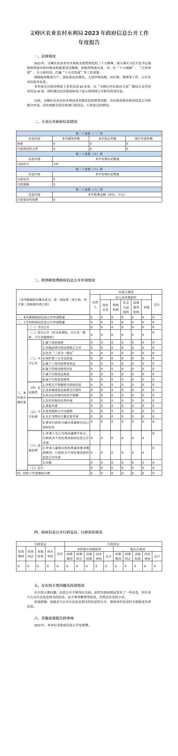 文峰区农业农村水利局2023年政府信息公开工作年度报告