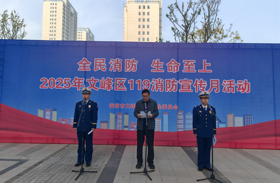 为进一步做好消防安全宣传教育工作,全面增强公众消防安全素质和社会抵御灾害能力,11月4日,2025年文峰区“119消防宣传月”活动在上禾园小区举行。文峰区政府副区长李卫华出席活动并讲话,区消防救援大队相关负责人、文峰区消防安全委员会成员单位分管领导、各镇(街道)、二级消防安全重点单位管理人约450余人参加活动。