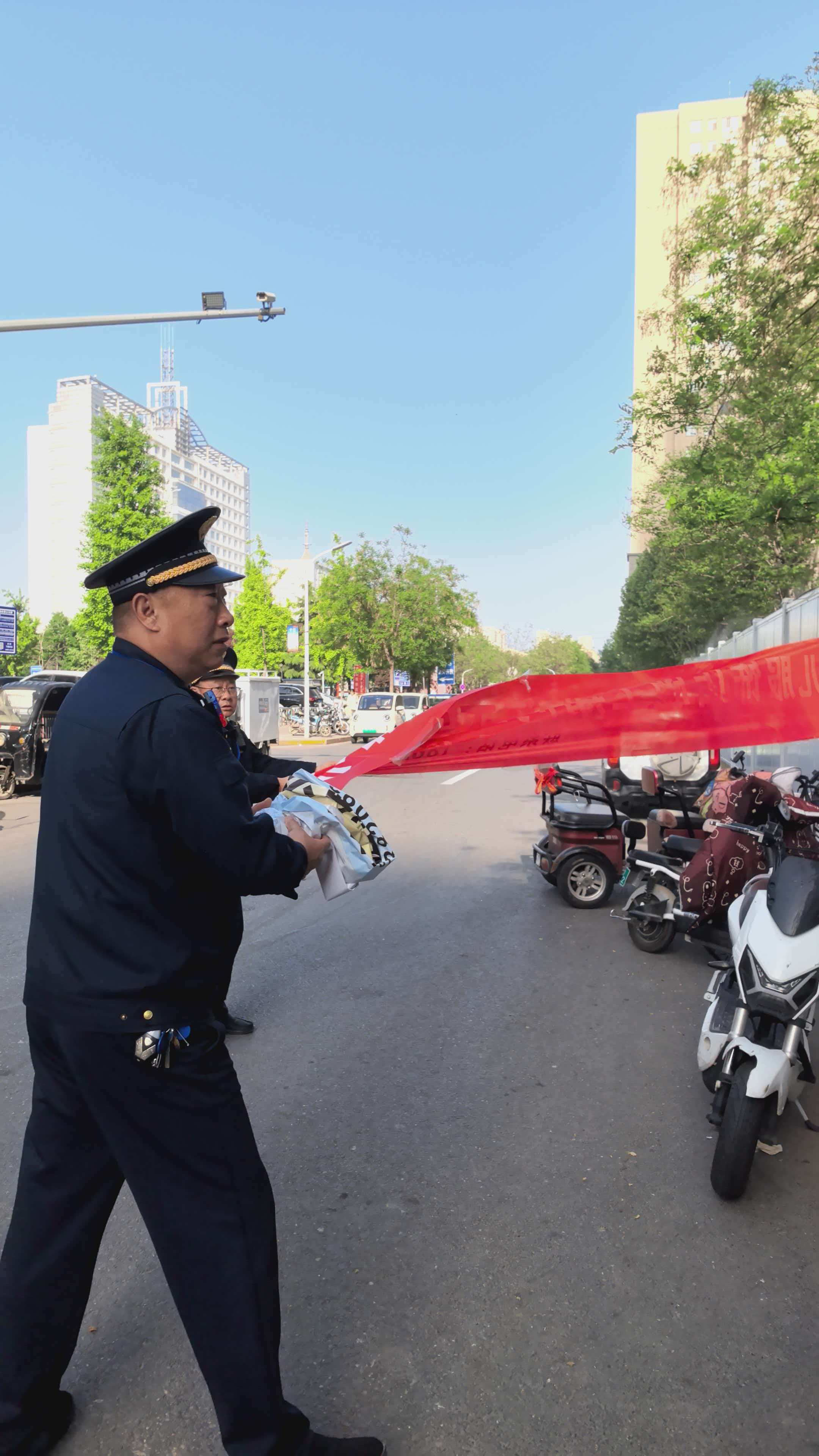为进一步净化辖区市容环境,提升城市精细化管理水平,4月20日,万达商业服务中心组织辖区城管队员开展市容环境专项整治行动,对辖区主次干道、背街小巷、电线杆等处的违规小广告、破旧条幅及乱贴乱画现象进行集中清理整治。